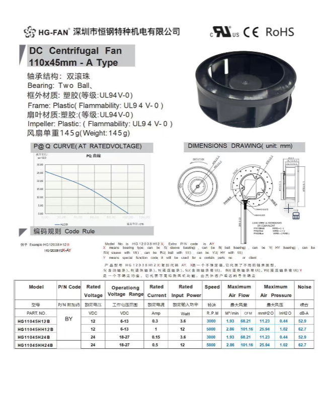 產(chǎn)品名稱:110X45MM離心風(fēng)扇